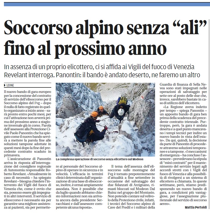 “Il Soccorso Alpino, giustamente premiato dalla Presidente FVG per l’importante lavoro che svolge, oltre ai riconoscimenti ha bisogno di mezzi. Ad oggi, nonostante le ripetute richieste da mesi, è ancora privo del servizio di elisoccorso”. Ad intervenire è il consigliere regionale FVG di Autonomia Responsabile, Roberto Revelant che sta predisponendo […]